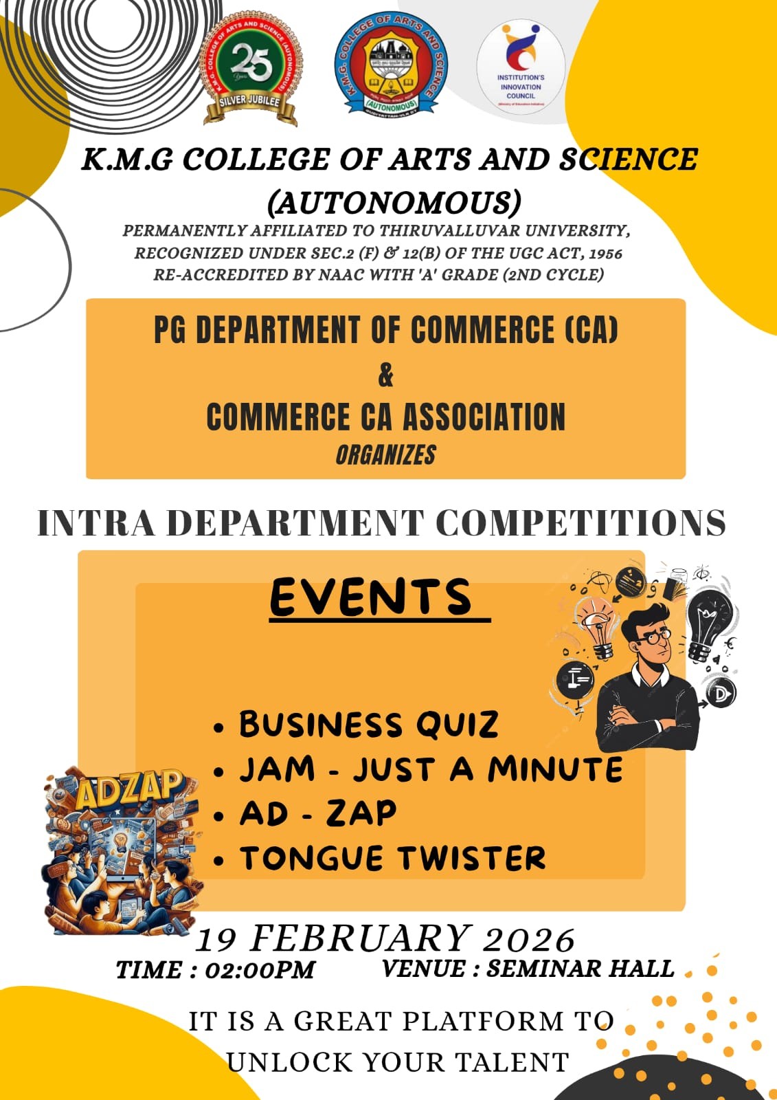 I am Sathish Kumar V, I have completed my BBA from KMG college of arts and science, I Completed my MBA in Correspondence at the same college, I have 4 years Experience in the procurement and supply chain management Field, Currently I am working in Redington Group of Company as a Purchase Executive for the past 2 years. I am proud to say I am a KMG College student, I would like to thank my respected staff Members, And my special thanks to Dr.Manikandan Sir HOD of the Department and the Cultural Committee team.