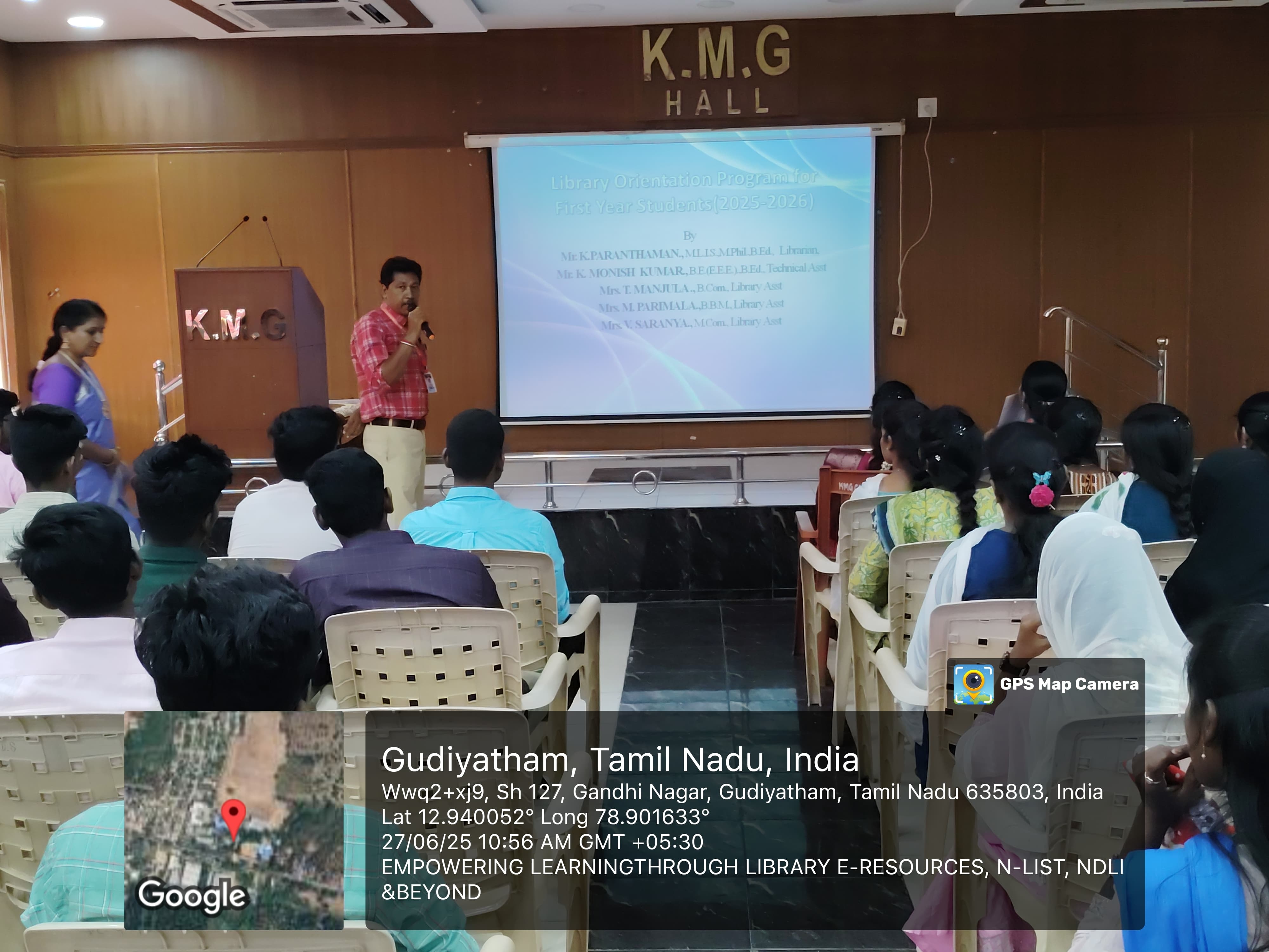 It is the duty of every Library to collect, store, process and disseminate the information to the right reader at the right time. K.M.G.College Library was established in the formative years of the college and growing like an organism according to the Fifth Law of Library Sciences. Usually College Libraries invest more for acquiring, processing, disseminating and maintaining resources and our college does the same.