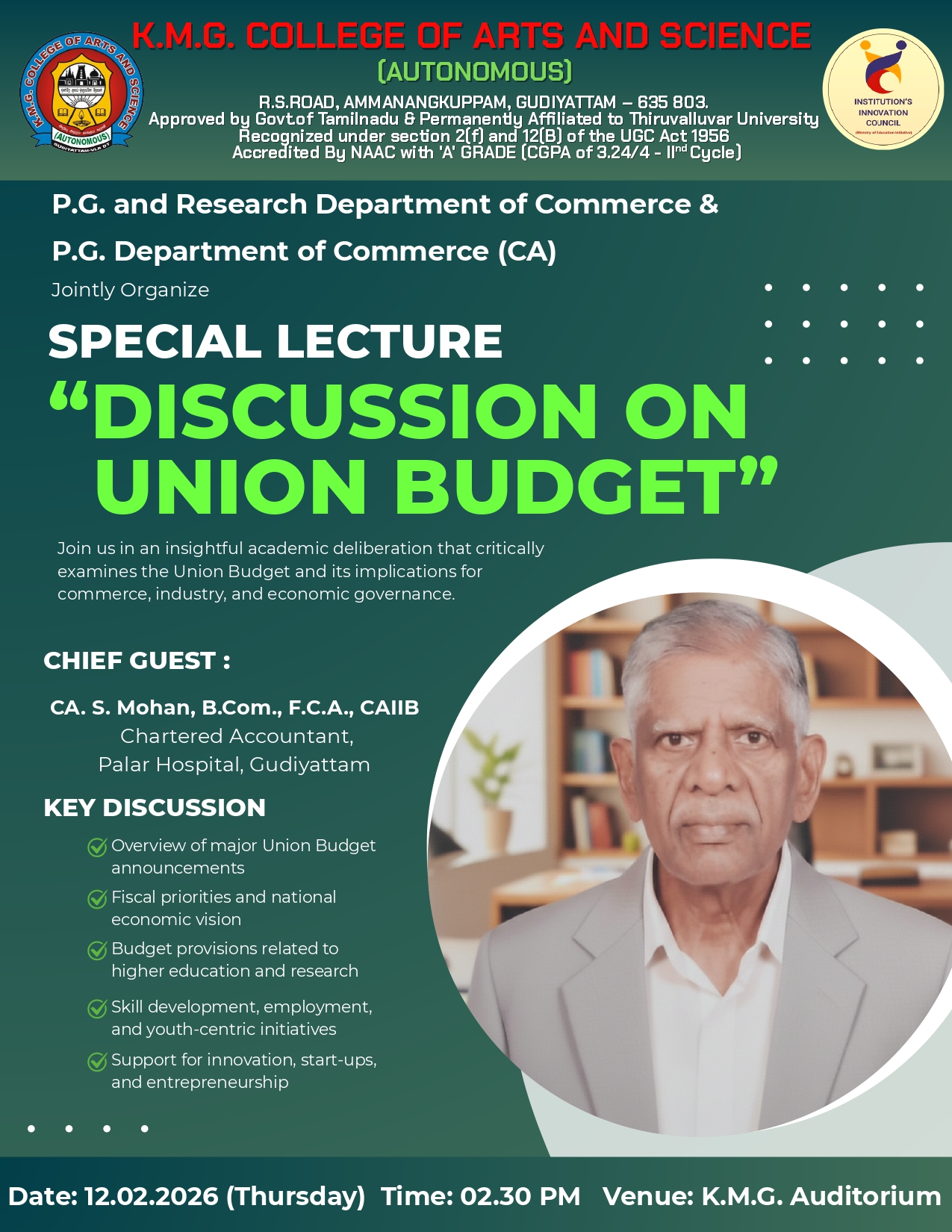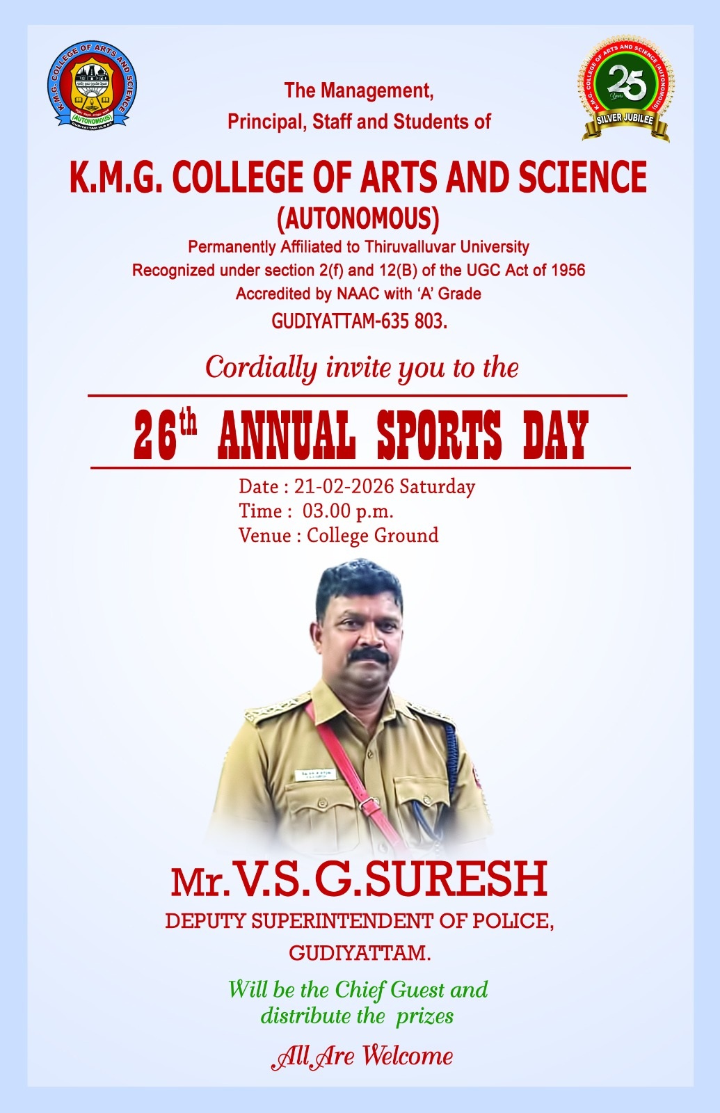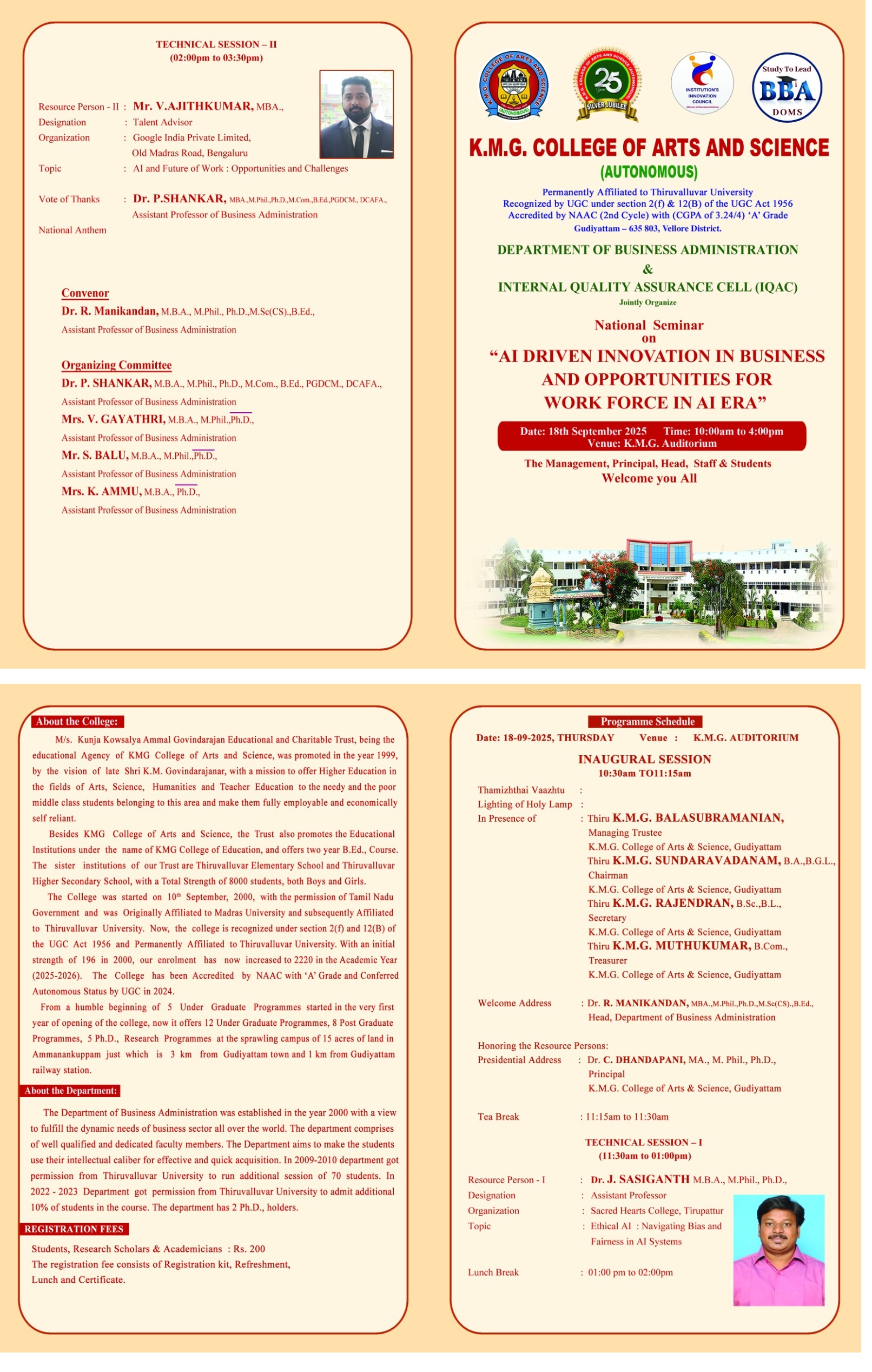 I am Sathish Kumar V, I have completed my BBA from KMG college of arts and science, I Completed my MBA in Correspondence at the same college, I have 4 years Experience in the procurement and supply chain management Field, Currently I am working in Redington Group of Company as a Purchase Executive for the past 2 years. I am proud to say I am a KMG College student, I would like to thank my respected staff Members, And my special thanks to Dr.Manikandan Sir HOD of the Department and the Cultural Committee team.