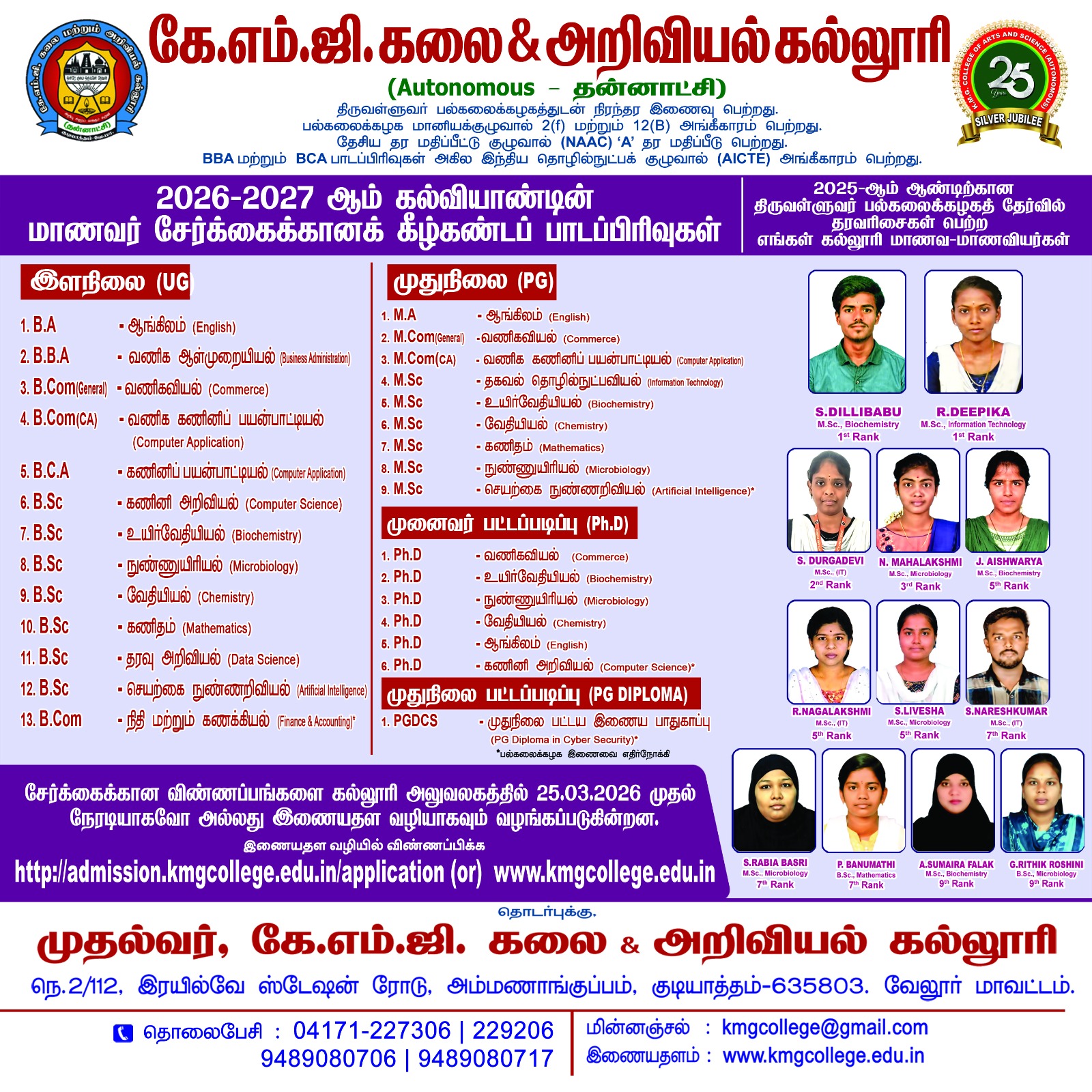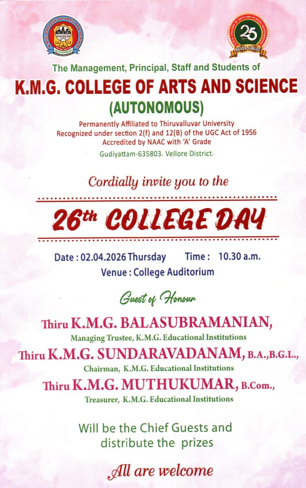 I am Jayasree from Gudiyatham. I had completed my Graduation( both B.sc & M.sc applied microbiology )at KMG college of Arts & science in 2016-2021 batch. once I completed my Graduation immediately I got job as medical coder in tharworx private limited. During my college days i had learned so many things and professors are taken efficient classes. I thank to our college and professors for the guidance, if we asked so many questions also without loosing patience everyone are explained well so the reason now I am survive in tharworx. Thank you for the guidance and support.